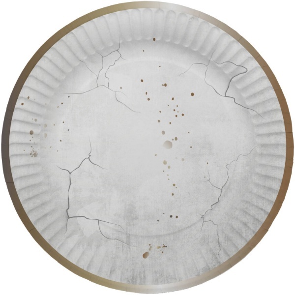 Papírové talíře Creepy Halloween 23 cm - 8 ks. Papírové talíře v motivu popraskaného mramoru ladícího k sadě Creepy Hallowen na tématickou party nebo Halloween, bude ideální a praktickou dekorací stolu na oslavě. Společně s dalšími produkty lze vytvořit krásnou dekoraci ve stejném motivu...