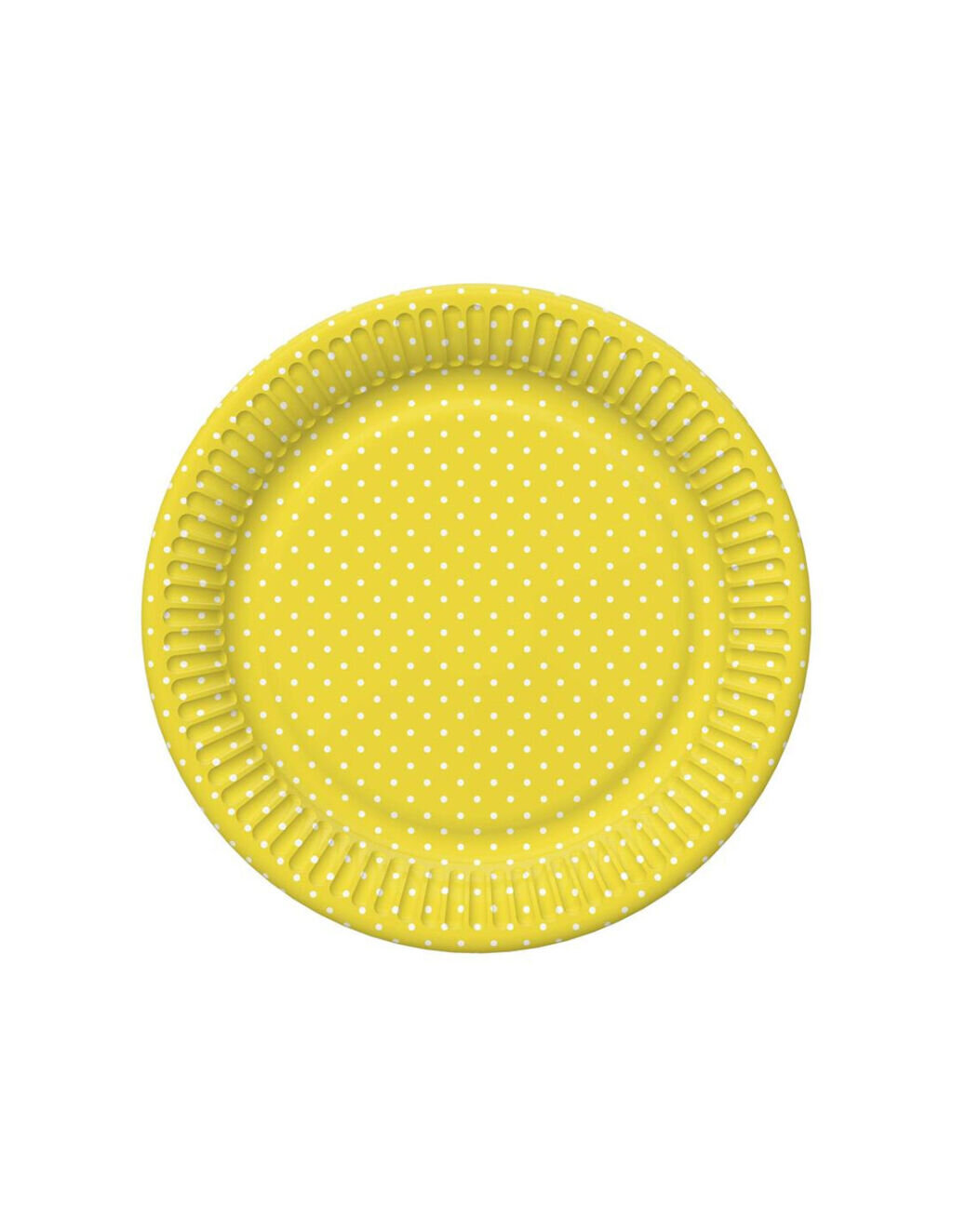 Papírový talíř velký - White Dots on Sunflower Yellow