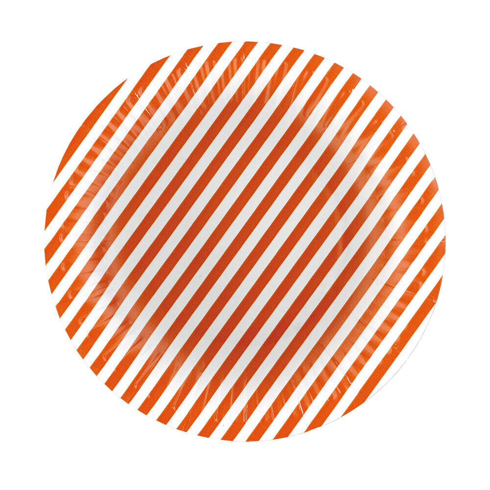 Papírové talíře Stripes oranžové, průměr 18 cm, balení obsahuje 10ks. Papírové talíře jsou ideálním řešením pro snadné stolování bez nepořádku.