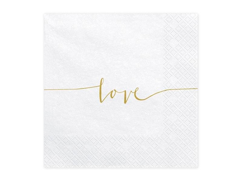 Papírové ubrousky bílé s nápisem Love 20 ks