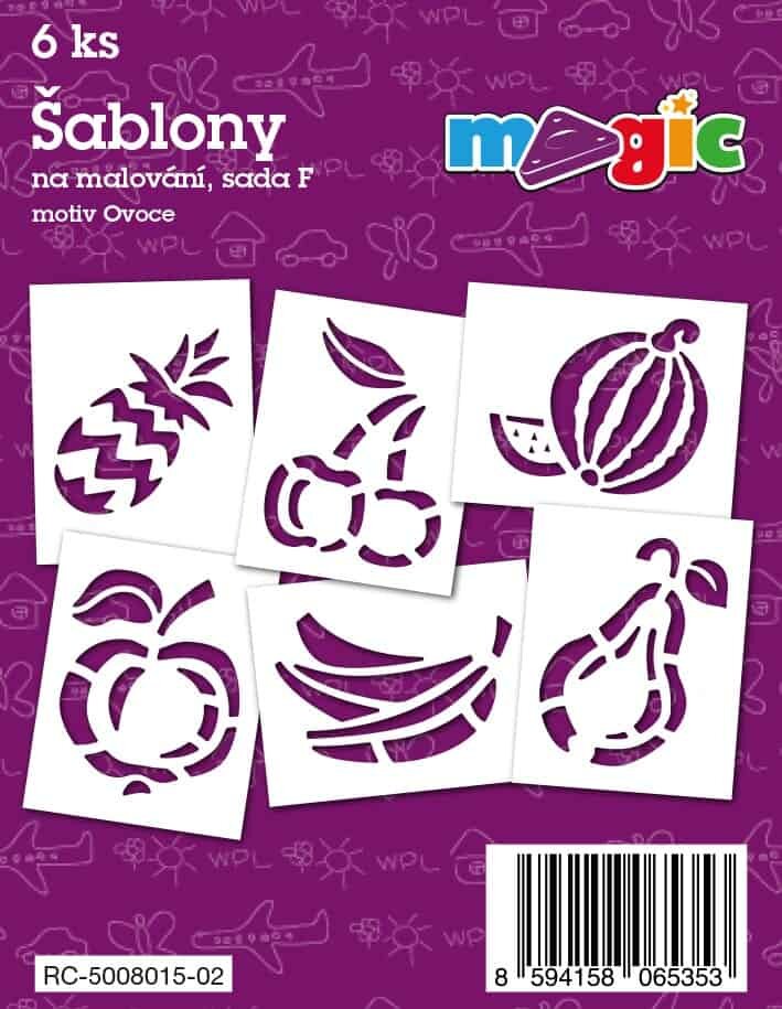 Papírové šablony MAGIC, 11 x 14cm, 6ks, sada F - Ovoce