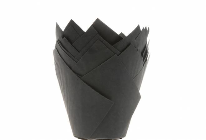 Černé papírové košíčky na muffiny tulipán 200ks - House of Marie