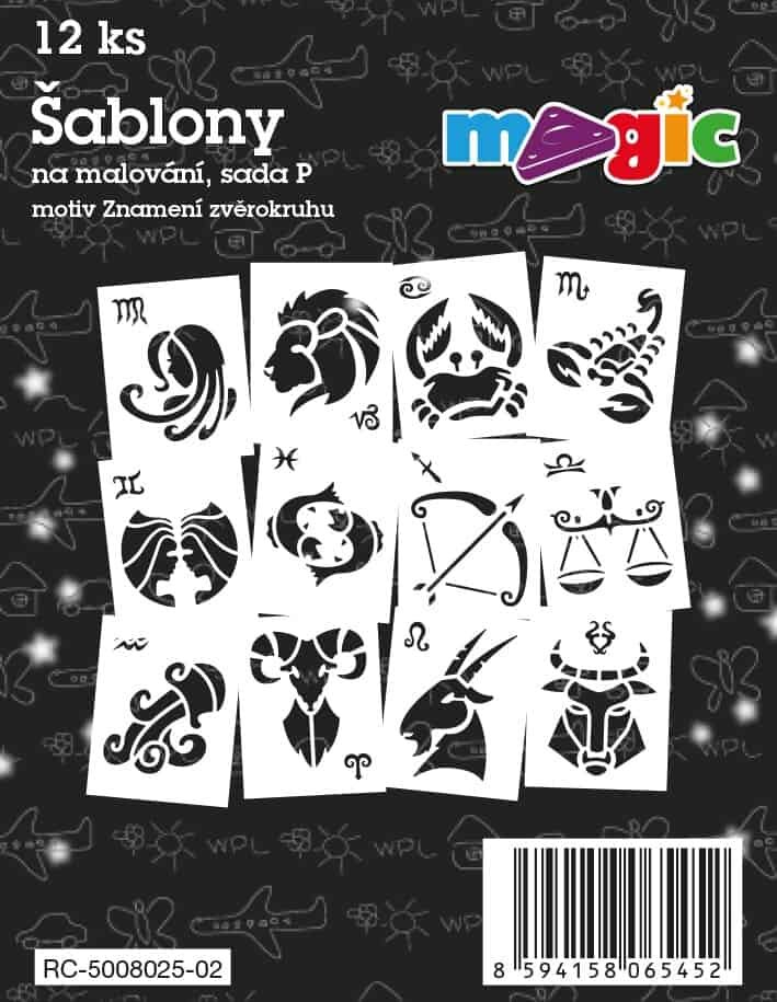 Papírové šablony MAGIC, 11 x 14cm, 12ks, sada P - Znamení zvěrokruhu