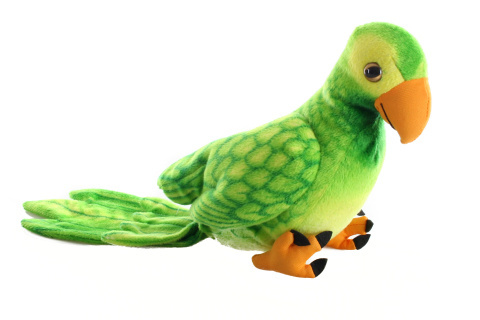 Zelený plyšový papoušek o rozměru cca 21 x 36 x 12 cm. Věk 0+ číst celé