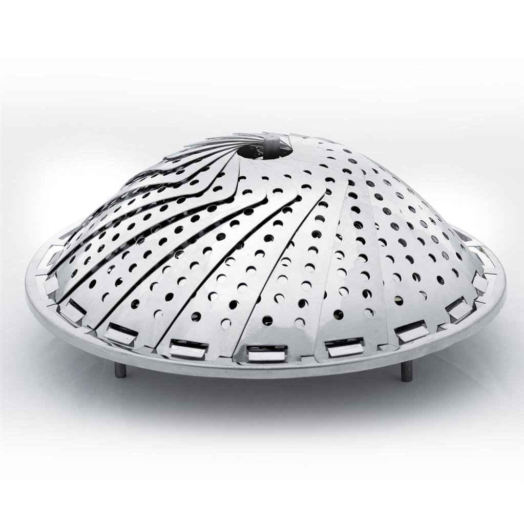 Pařáček skládací je vhodný k napařování knedlíků i vaření zeleniny a jiných pokrmů v páře - zachováte minerály a vitamíny. Je možné jej použít do hrnců různých průměrů. Materiál: nerez. Rozměry: pr. 14-23 cm.