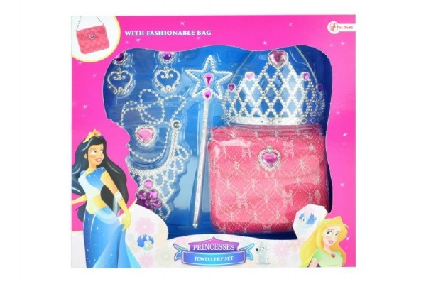 Sada krásy princezna korunka+kabelka+doplňky plast v krabici 31x28x6cm
