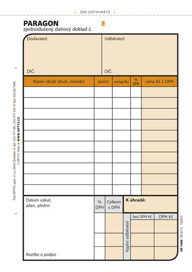 - Typ papíru: NCR, umožňuje kopírování