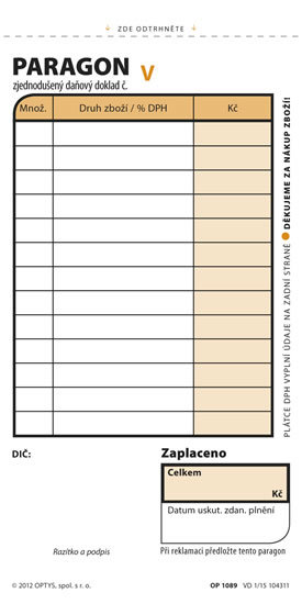 - Dva bloky po 50 listech - dostatek účtenek pro dlouhodobé použití.