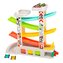 Tato dřevěná závodní dráha přináší hodiny zábavy díky čtyřem barevným autíčkům, která sviští dolů po tracku z obou startovních platforem. Součástí sady je i praktické parkoviště s tankovací stanicí a třemi garážemi, kde děti mohou autíčka bezpečně uložit po závodě. Díky kvalitnímu zpracování a použití přírodních materiálů si vaše děti užijí nejen radost z hraní, ale i rozvoj motoriky a smyslových dovedností.