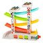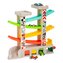 Tato dřevěná závodní dráha přináší hodiny zábavy díky čtyřem barevným autíčkům, která sviští dolů po tracku z obou startovních platforem. Součástí sady je i praktické parkoviště s tankovací stanicí a třemi garážemi, kde děti mohou autíčka bezpečně uložit po závodě. Díky kvalitnímu zpracování a použití přírodních materiálů si vaše děti užijí nejen radost z hraní, ale i rozvoj motoriky a smyslových dovedností.