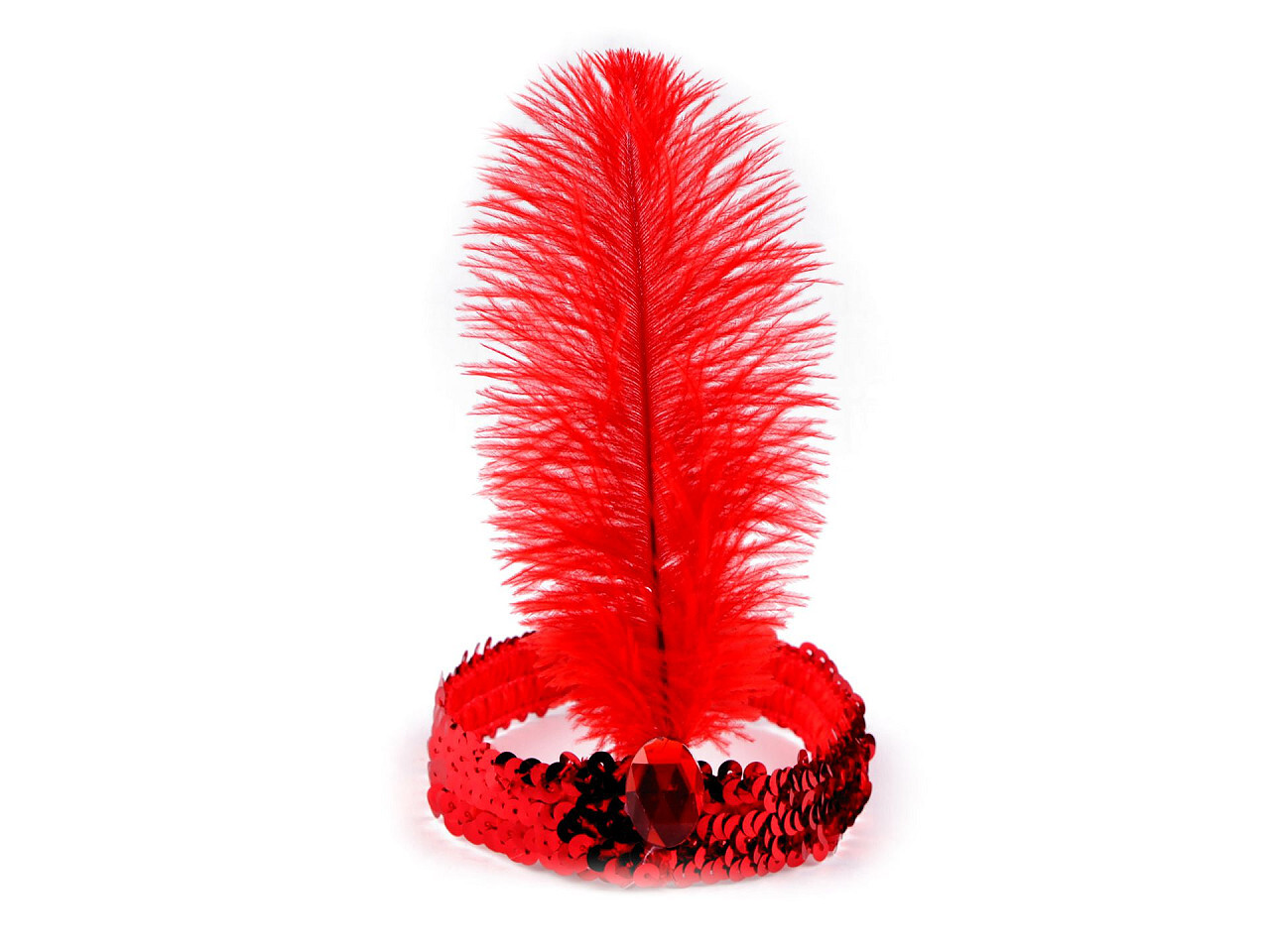 Karnevalová čelenka flitrová s peřím retro - 1 ks - 2 červená