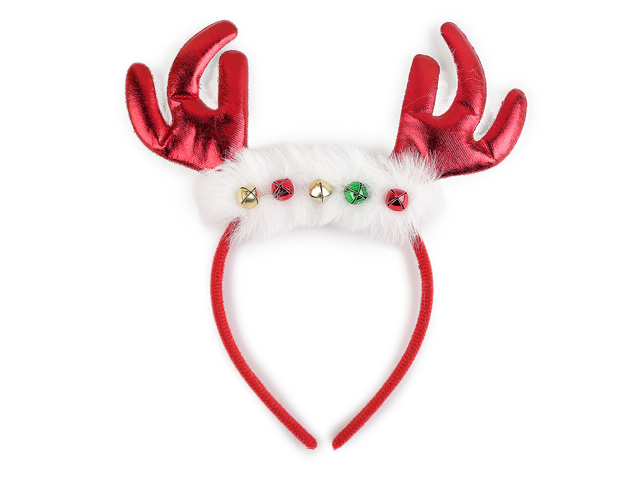 Čelenka do vlasů sob s rolničkami, vánoční / párty - 1 ks - 1 červená