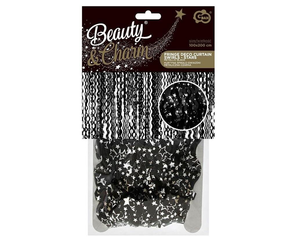 KURTYNA DEKORACYJNA CZARNA Z NADRUKIEM GWIAZDEK