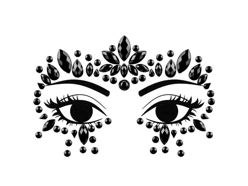 Dekoracja na twarz Kryształki czarne 15x9cm