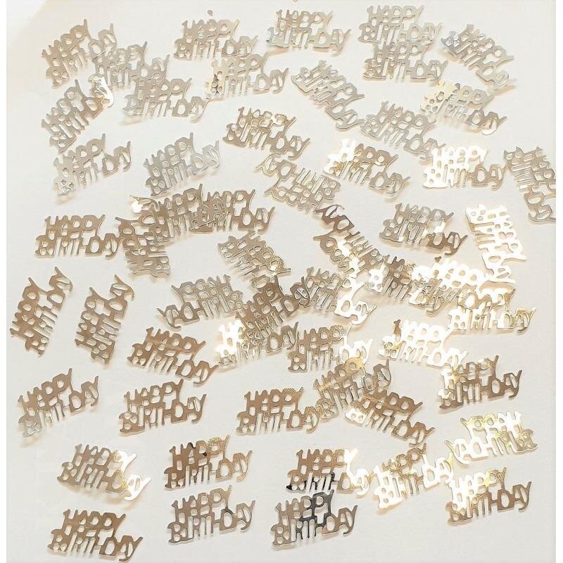 Konfetti metalizowane Happy Birthday srebrne
