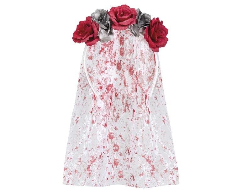Tiara w kształcie welonu Strasznej Panny MłodejTiara z wiankiem i welonem, ze śladami krwiSuper dodatek do kostiumu na HalloweenTiara w rozmiarze uniwersalnym, na plastikowej opasce. číst celé