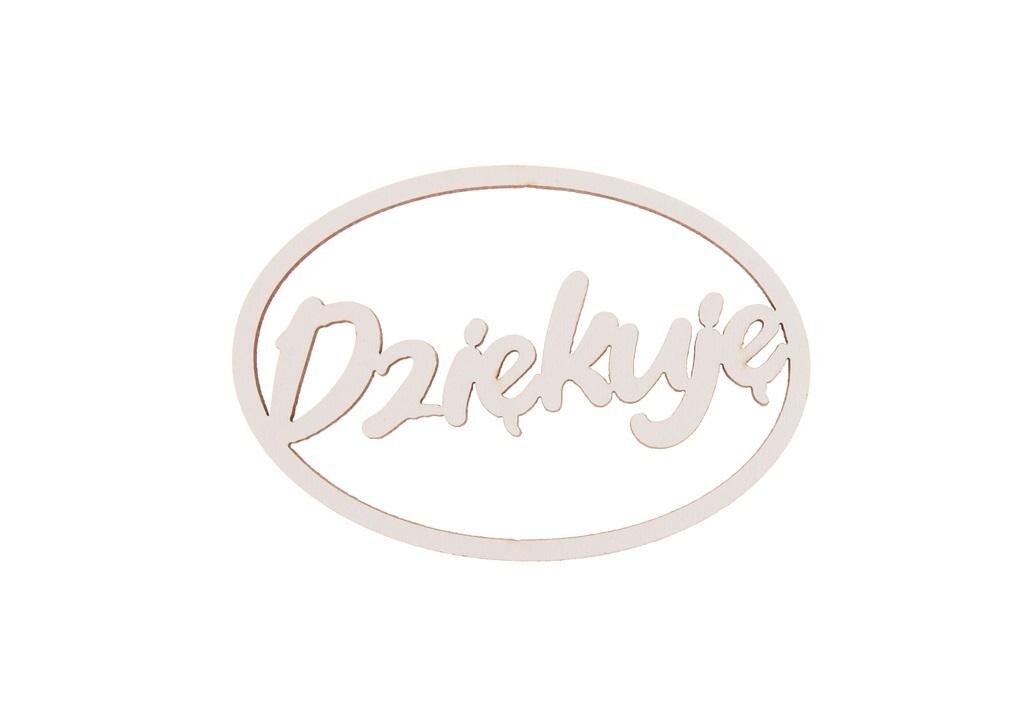 Drewniany napis (wzór na zdjęciu) wycięty precyzyjną techniką laserową z białej płyty HDF. Jego wykorzystanie zależy tylko od inwencji twórczej klienta, ma wiele zastosowań od tradycyjnych dekoracji florystycznych, przez ciekawe udekorowanie różnego rodzaju prezentów. Ten drobny dodatek podkreśli wyjątkowy charakter uroczystości lub będzie doskonałym akcentem na prezencie.