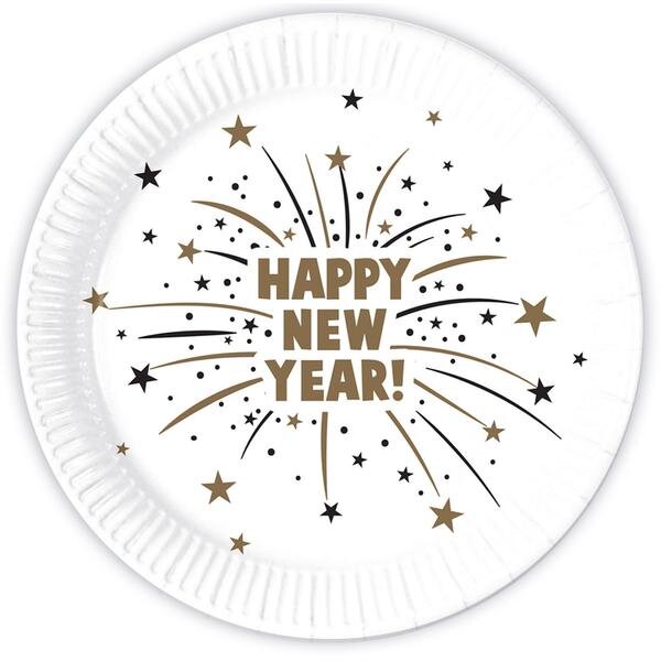 TALÍŘKY PAPÍROVÉ HAPPY NEW YEAR 8KS, 23CM