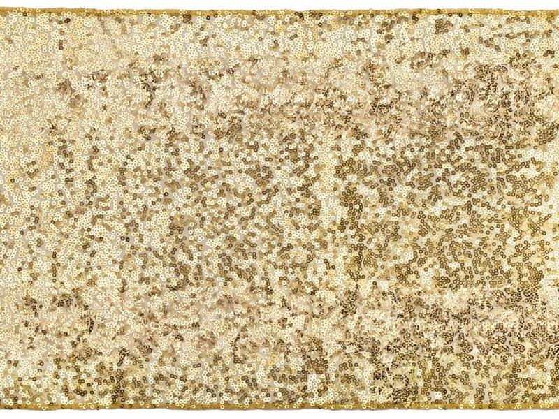 Bieżnik z siateczki dekoracyjnej z cekinami w kolorze złotym, szerokość ok. 30 cm, długość ok. 5 m.