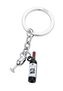 Doplněk pro fajnšmekry. Na zdraví! Klíčenka s dekorem láhve a sklenicí na víno.