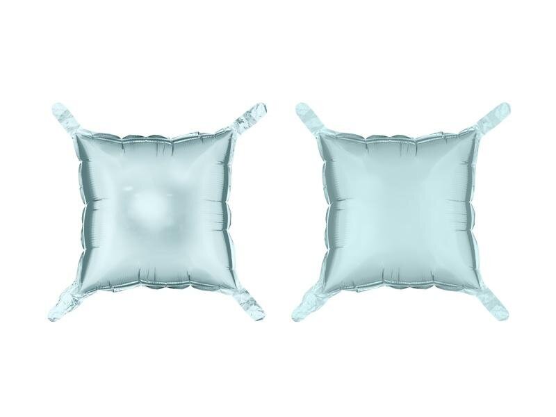 "Tło foliowe balonowe Kwadrat dwustronne jasnoniebieskie, z jednej strony matowe wykończenie, z drugiej błyszczące. Zestaw zawiera 4 balony kwadraty. Wymiary przed napompowaniem ok. 40 x 40 cm, wymiary po napompowaniu 35 x 35 cm. Do napompowania powietrzem. Zestaw zawiera słomkę. Instrukcja montażu na grafice pod zdjęciem. Wszystkie balony foliowe kurtyny Kwadraty dostępne w ofercie są w takim samym rozmiarze dzięki czemu możliwe jest dowolne łączenie kwadratów ze sobą.(1 op. / 4 szt.)"