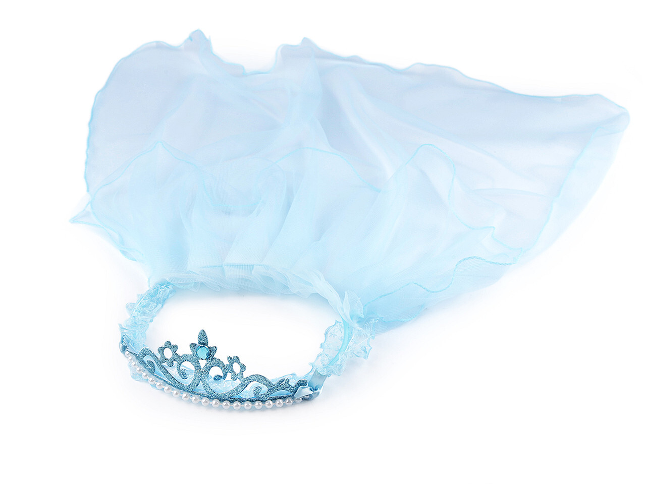 Věneček / korunka do vlasů se závojem - 1 ks - 13 modrá azuro