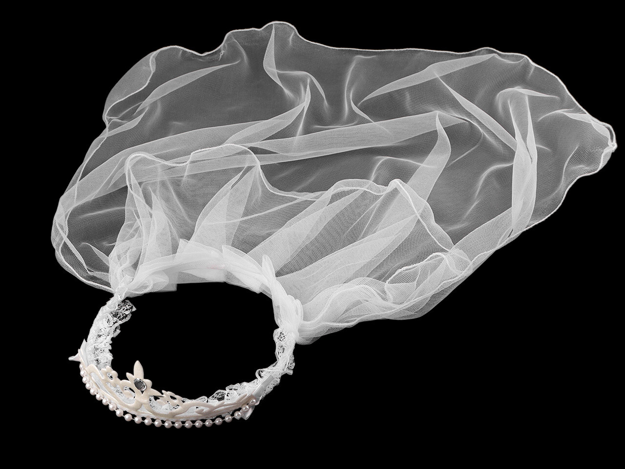 Věneček / korunka do vlasů se závojem - 1 ks - 10 bílá