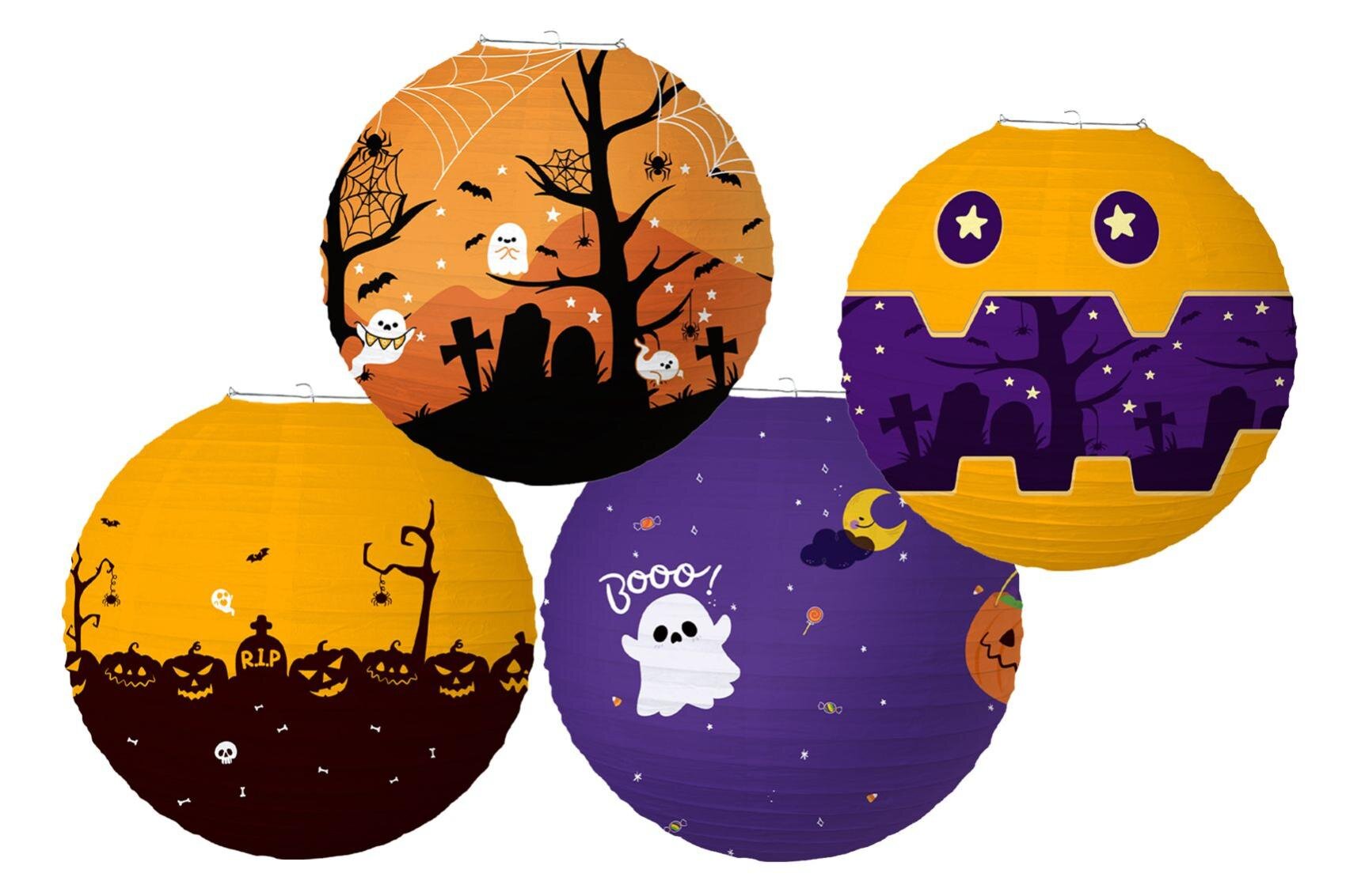 Dodejte své halloweenské výzdobě tu správnou atmosféru s tímto stylovým kulatým lampionem. Strašidelné motivy jako dýně, duchové, netopýři a hřbitovy zaujmou děti i dospělé a perfektně doplní každou tematickou oslavu nebo večerní procházku.Průměr 30 cm číst celé