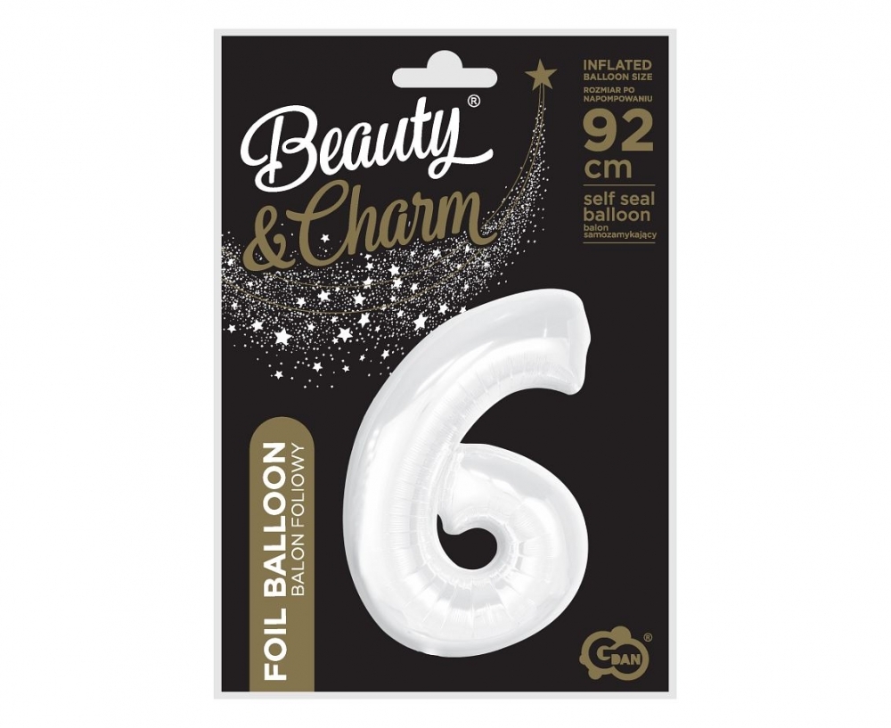 Balon foliowy 92 cm cyfra 6 biały Party GODAN CH-B9B6