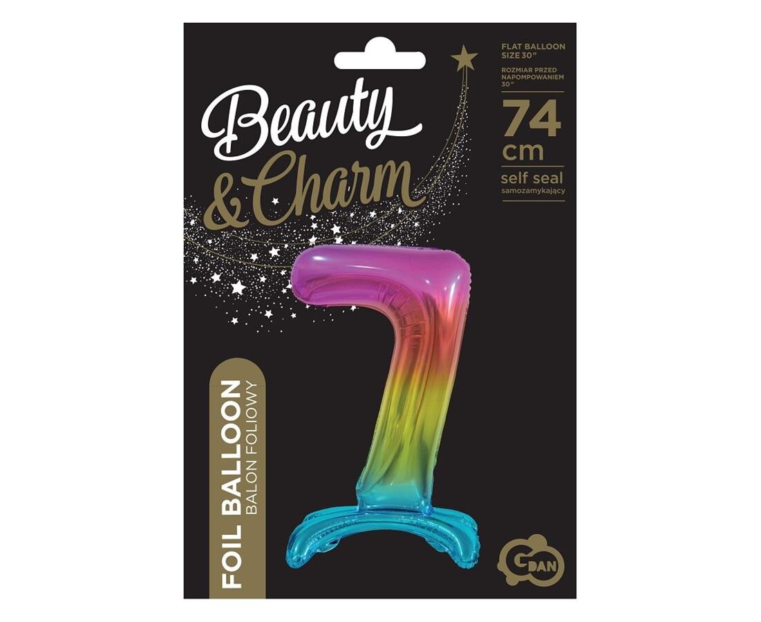 BALON FOLIOWY CYFRA 74 CM TĘCZA 7 STOJĄCY GO PBH