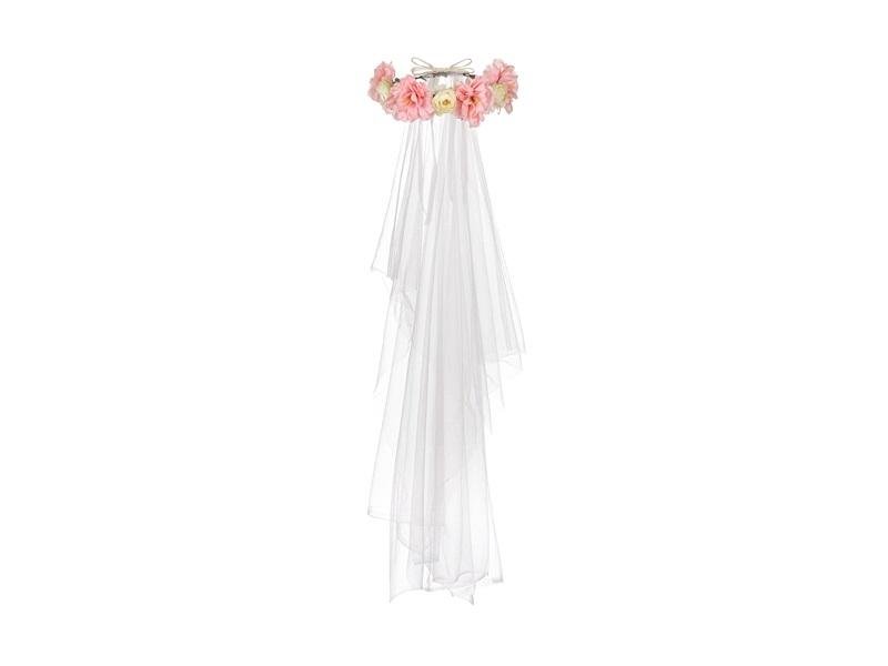 Čelenka s bílým závojem a růžovými