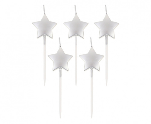 Dortové svíčky Stars - metalické stříbrné 6,5 cm - 5 ks