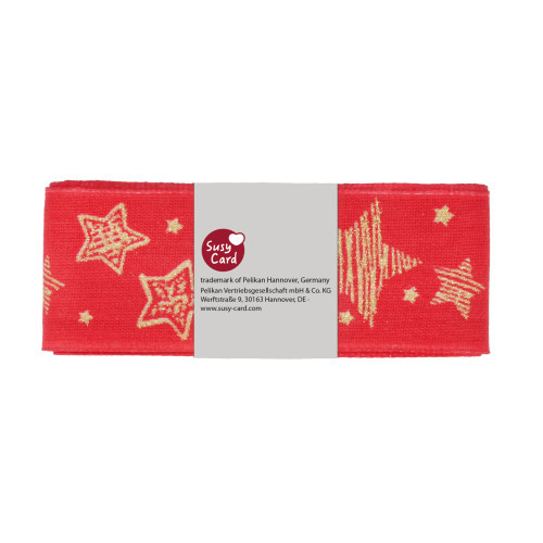 Stuha textilní, červená s hvězdami