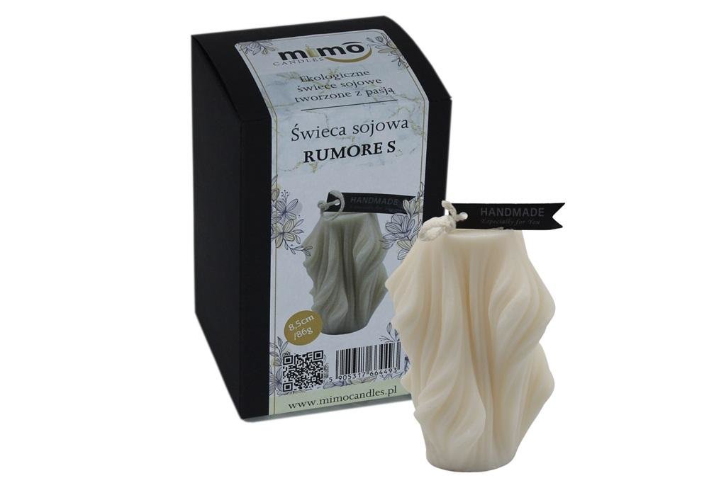Świeca Naturalna Wolnostojąca z Wosku Sojowego RUMORE S Nasze świece to gwarancja zakupu naturalnego, biodegradowalnego produktu. Wosk sojowy to naturalny wosk pozyskiwany z ziaren soi. Odkryj wyjątkową jakość i ekologiczną przyjemność, ze spalania świec sojowych! Nasze świece wykonane są z naturalnego wosku sojowego, pozyskiwanego z odnawialnych źródeł. Palą się dłużej niż tradycyjne świeczki parafinowe, jednak ich czyste spalanie nie tylko tworzy piękne, relaksujące światło, ale dba o jakość powietrza w Twoim domu. Zestawione z delikatnymi zapachami lub w wersji bezwonnych, oferują możliwość stworzenia wyjątkowej atmosfery. Spalając Nasze świece możesz zanurzyć się w przyjemnych aromatach i poczuć korzyści płynące z naturalnych świeczek sojowych. Sprawdź naszą kolekcję, dopasuj ją do swojego wnętrza , świece sojowe to idealne połączenie pięknego designu i przyjaznego środowisku rozwiązaniu. Tobie nie pozostaje nic innego jak cieszyć się ekologicznym luksusem w swoim domu! Wosk sojowy zyskuje swoją popularność dzięki swoim licznym zaletą takim jak: - dłuższy czas palenia, wosk sojowy ma niższą temperaturę topienia co wydłuża czas spalania - jest ekologiczny i biodegradowalny, - nie dymią, co poprawia jakość powietrza w pomieszczeniu, - brak toksyn, świece sojowe palą się czysto i nie wydzielają szkodliwych substancji, -świece posiadają naturalny, przyjemny zapach wosku sojowego, -do produkcji świecy wykorzystywany jest bawełniany knot Dodatkowym atutem naszych świec jest wariacja w formie co oznacza, że nasze świece wolnostojące występujące w różnych kształtach i rozmiarach. Pozwala to na dopasowanie ich pod każdy gust, do różnych wnętrz i na każdą okazję. Świece sojowe w Naszym sklepie to produkty wykonywane ręcznie. Szczegóły produktu: Waga: 86g Wysokość: 8,5cm Świece sojowe to idealny prezent na każdą okazję! Ich naturalna elegancja oraz nasza opcja pakowania prezentowego podoła nawet najbardziej wymagającym. Niezależnie od tego czy obchodzimy urodziny, imieniny, święta czy po prostu chcemy podarować wyjątkowy prezent nasze świece zachwycą każdego, ponieważ forma spalania i jego długość sprawiają, że mogą cieszyć się nimi przez długi czas, tworząc przy tym wyjątkowa atmosferę i relaksujący nastrój. Nasze produkty są wytwarzane ręcznie, dlatego mogą posiadać lekkie niedoskonałości oraz biały nalot co jest naturalnym zjawiskiem wytwarzanym przez wosk sojowy.