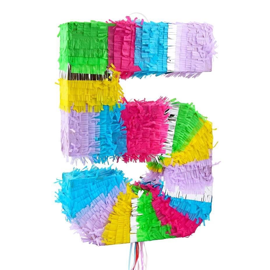 Oslavte s radostí! Pinata ve tvaru čísla 5 v jemných pastelových barvách je perfektním doplňkem na narozeninovou oslavu nebo jinou slavnostní příležitost, která zanechá všechny hosty nadšené.
