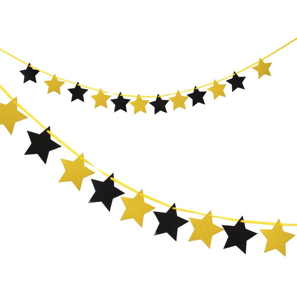 Papierowe gwiazdki złote i czarne na tasiemce do zawieszenia. Długość ozdoby 3 metry. číst celé