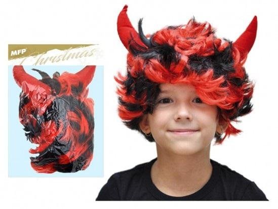 Diabelska peruka z rogami krótka. Wymiar: 160mm x 290mm x 50mm (szer. x wys. x gł.) číst celé
