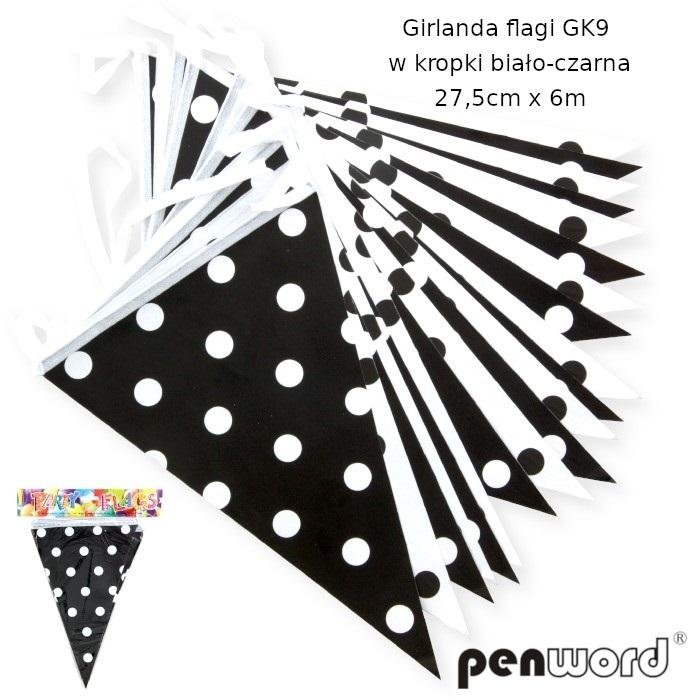 Girlanda flagi w kropki biało-czarna 27.5cmx6m