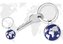 Klíčenka s kroužkem a přívěskem zeměkoule. Barva: stříbrná, modrá, bílá Materiál: leštěný kov
