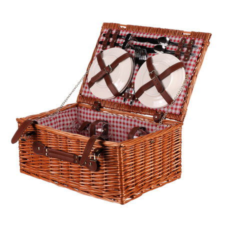 Koš piknikový - s vybavením pro 4 osoby, proutěný, barva hnědá.