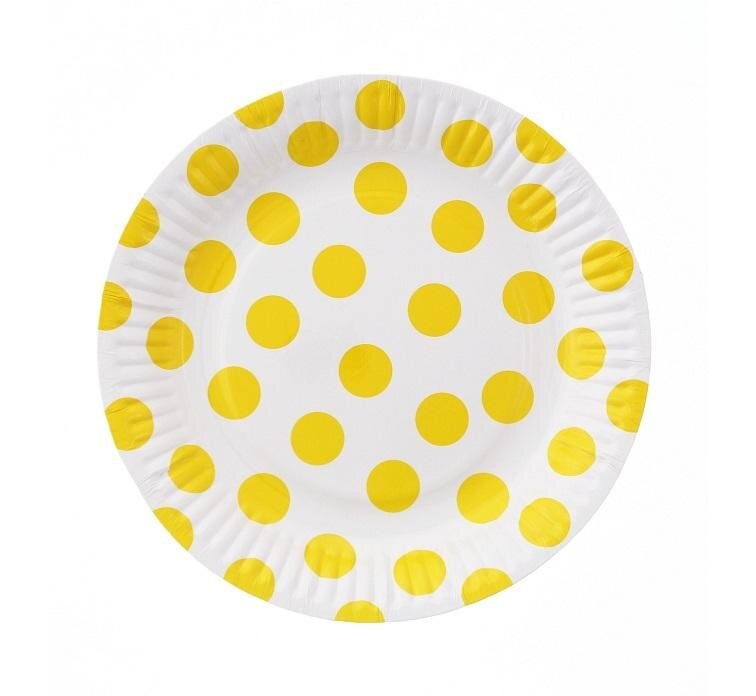 Talerzyki papierowe białe groszki żółte 18cm 6szt