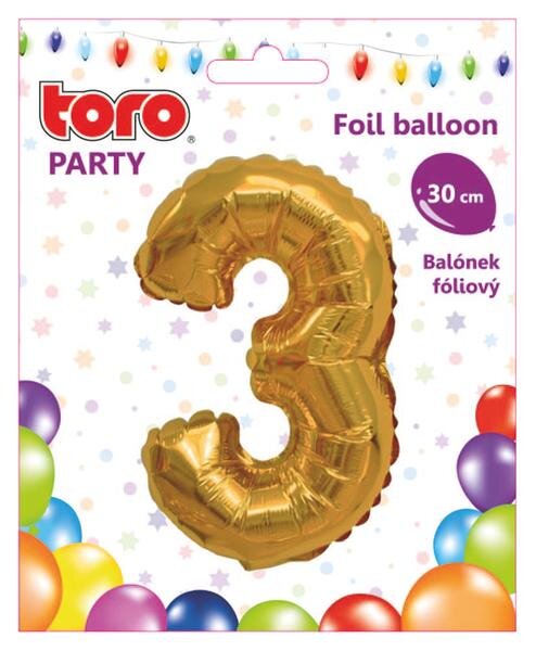 BALÓNEK ČÍSLICE 3, 30CM, MATNĚ ZLATÁ