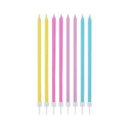 Dortové svíčky dlouhé pastelové s držátky 14,5 cm - 16 ks