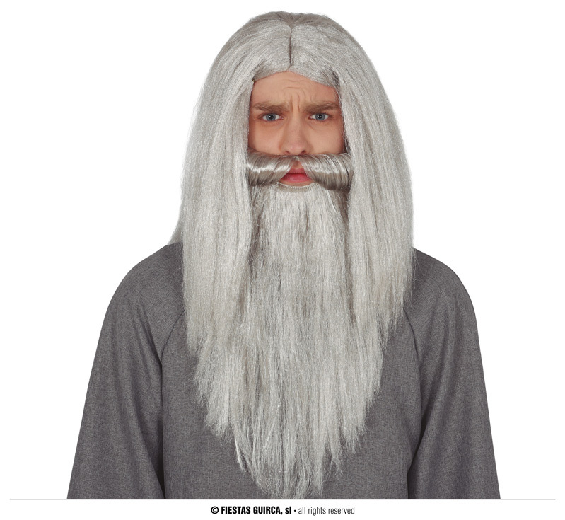 - Design: šedá paruka s připojenými vousy