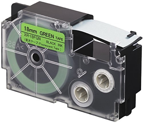 Casio XR-18FGN , 18mm x 8m, černý tisk / signální zelený podklad, kompatibilní páska