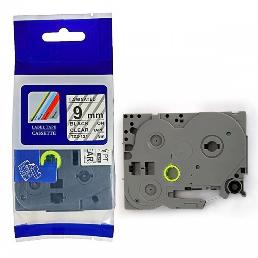Kompatibilní páska s Brother TZ-FX121 / TZe-FX121, 9mm x 8m, flexi, černý tisk / průhledný