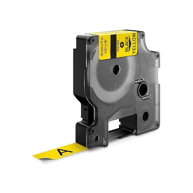 Kompatibilní páska s Dymo 18432, 12mm x 5, 5m černý tisk / žlutý podklad, vinyl