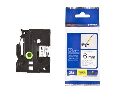 Brother TZ-FX211 / TZe-FX211, 6mm x 8m, černý tisk/bílý podklad, originální páska