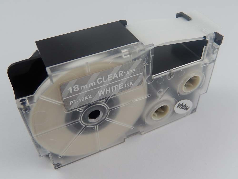 Kompatibilní páska s Casio XR-18AX 18mm x 8m bílý tisk / průhledný podklad