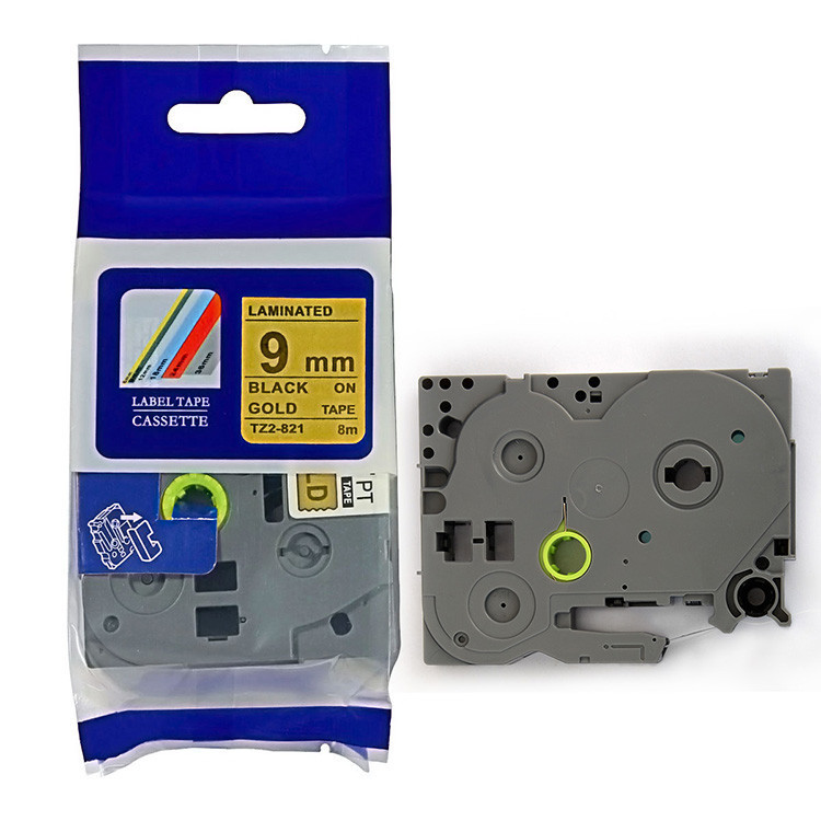 Kompatibilní páska s Brother TZ-821 / TZe-821, 9mm x 8m, černý tisk / zlatý podklad